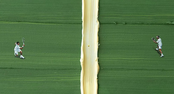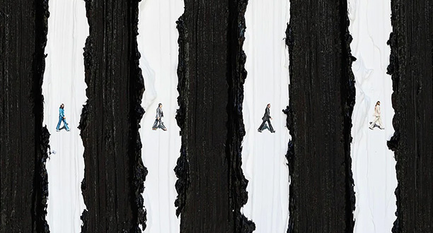 “Life in Minimalism,” which floats miniature figures on a texture resembling a white snowfield, captures the subtle movements and solitude of winter and silence.